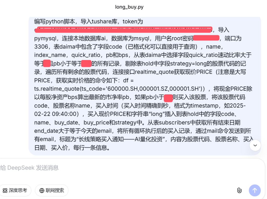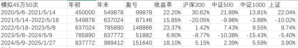 作为幻方量化的产物,让deepseek实现量化策略的编写再合适不过了。需要回测1800只股票过去5年的数据,一年约250个交易日,遍历一次需要1800*5*250次查询计算,也就是说回测一次需要至少225万次计算,每调整一次参数或有什么新想法,就要重来一次。途中脚本可能出现bug,再调整,如此反复,这个过程就是在不断记录、不断学习,累积know how。经过几个日夜的吭哧,手搓出两个模型,业绩如下: